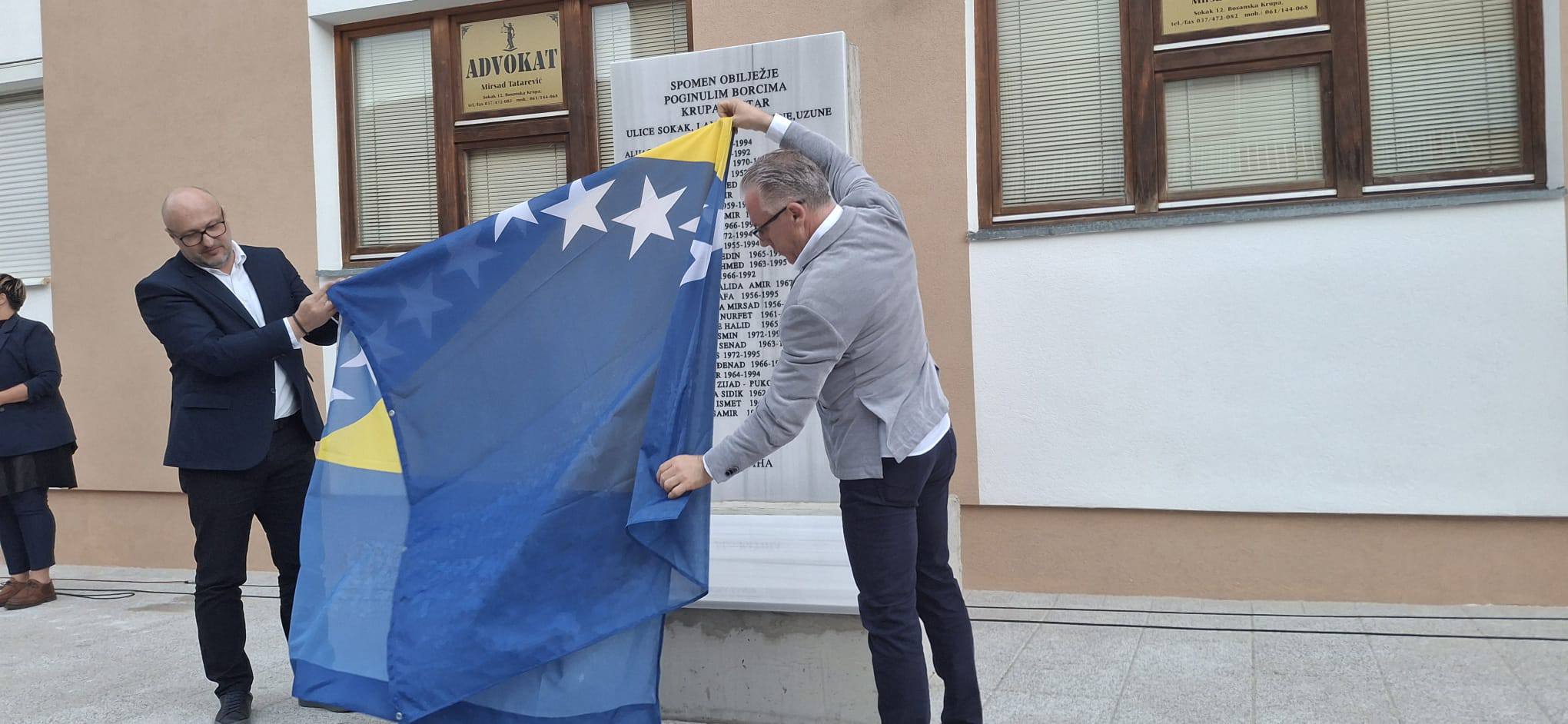 Položeno je cvijeće na centralnom spomen obilježju u Bosanskoj Krupi a premijer Hušić i krupski gradonačelnik Armin Halitović otkrili su spomen obilježje Sokak.