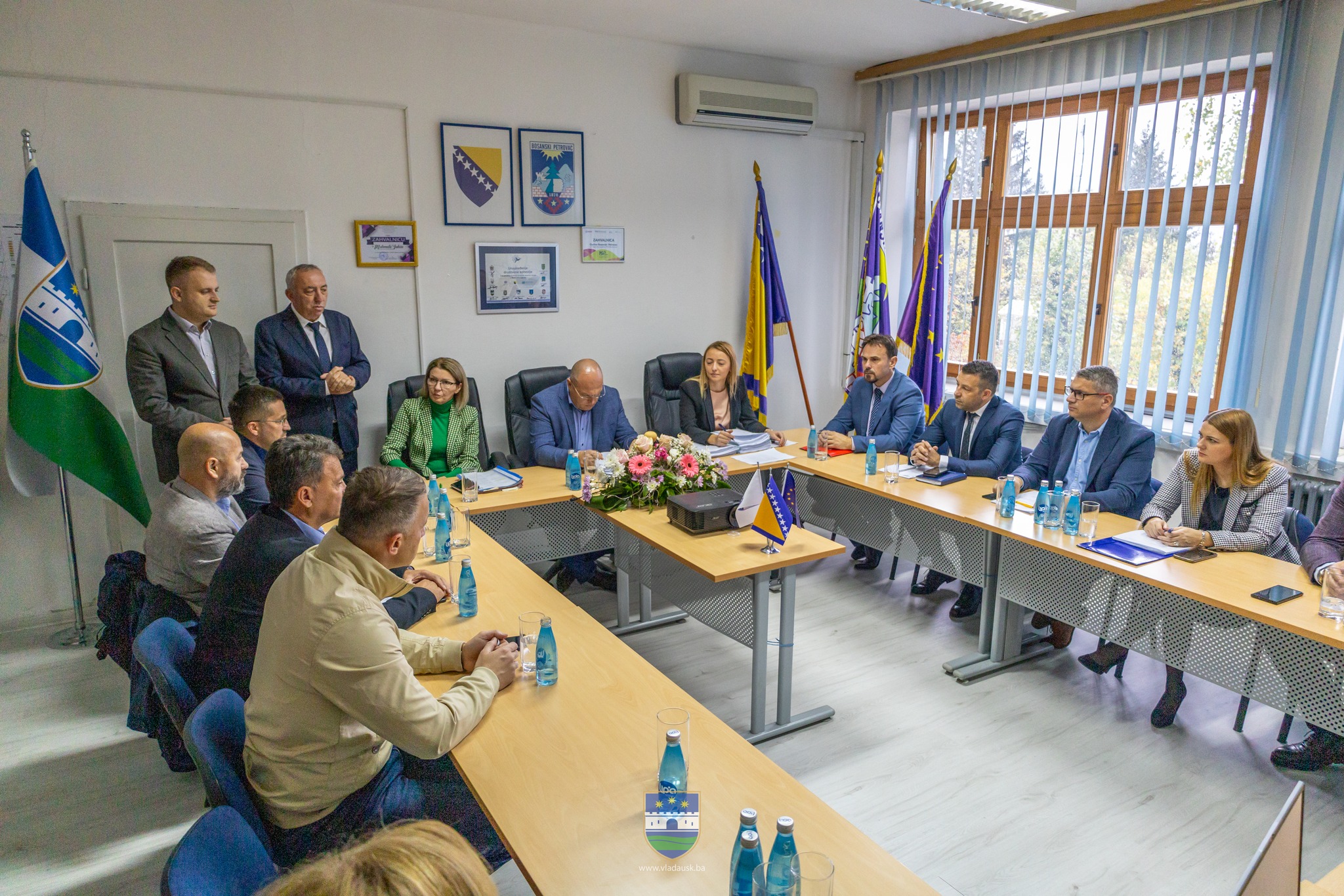 Vlada Unsko - sanskog kantona održala je danas sjednicu u Bosanskom Petrovcu. Dobrodošlicu premijeru Mustafi Ružniću i članovima Vlade Kantona poželio je Mahmut Jukic, načelnik općine Bosanski Petrovac a uspješan rad poželio je i predsjedavajući Skupštine USK Jasmin Musić.