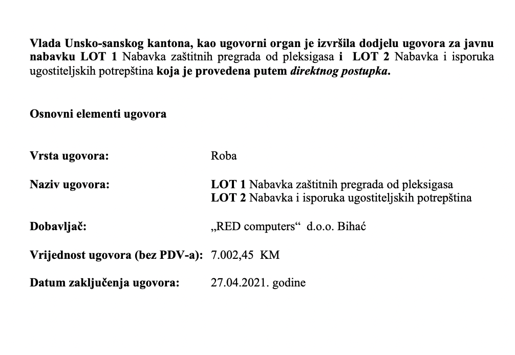 LOT 1 Nabavka zaštitnih pregrada od pleksigasa i LOT 2 Nabavka i isporuka ugostiteljskih potrepština