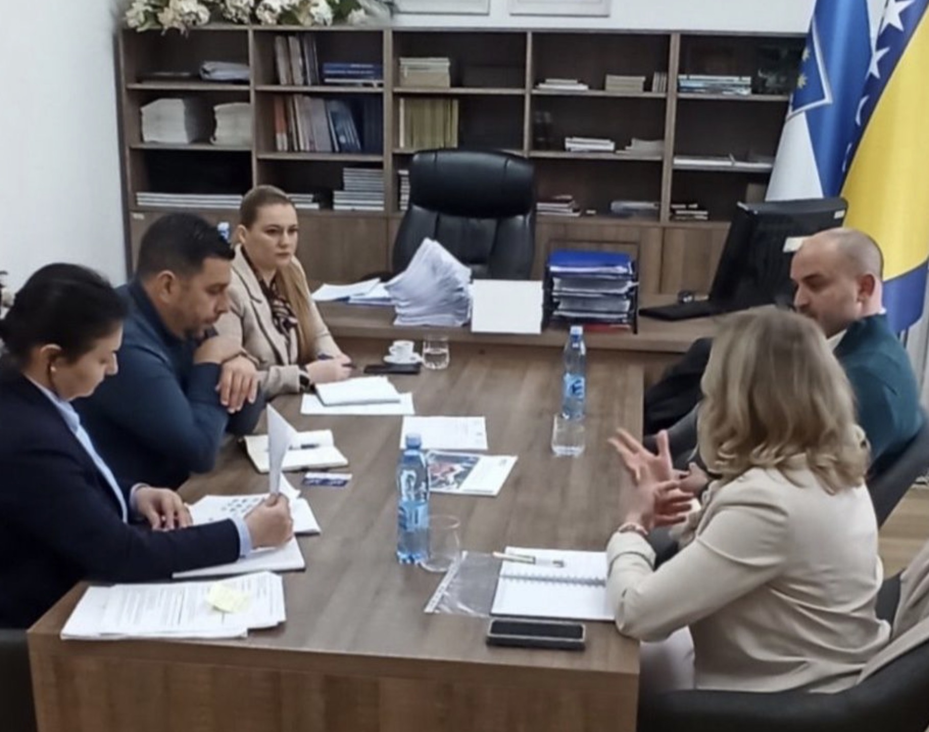 Samra Mehić, ministrica privrede u Vladi Unsko-sanskog kantona sa saradnicima razgovarala je danas sa vlasnicima firme CNC proizvodnja Bajrić.
