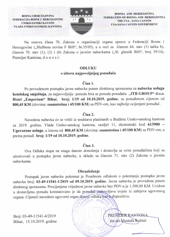 Preuzmi dokument: Odluka o izboru najpovoljnijeg ponuđača