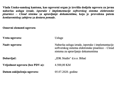 Nabavka usluga izrade, isporuke i implementacije softverskog sistema elektronske pisarnice – Cloud sistema za upravljanje dokumentima