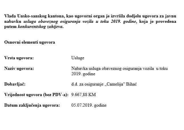 Nabavka usluga obaveznog osiguranja vozila u toku 2019. godine