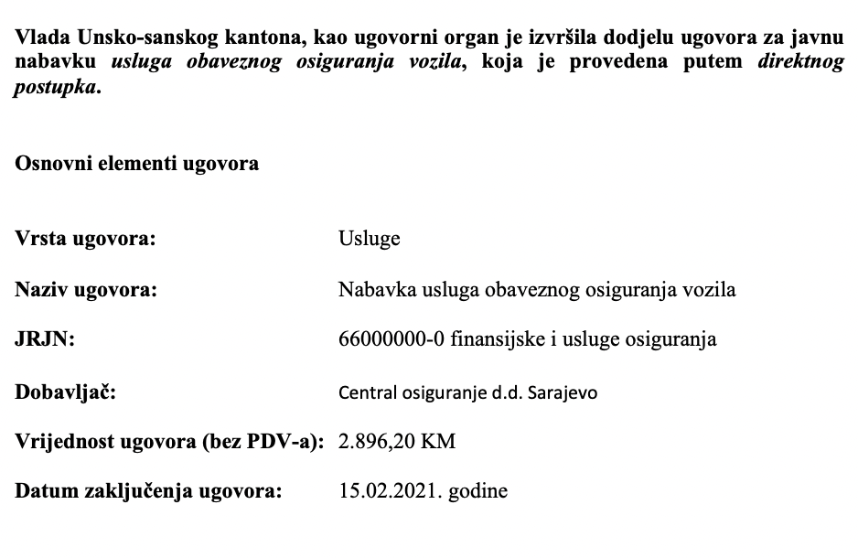 Nabavka usluga obaveznog osiguranja vozila