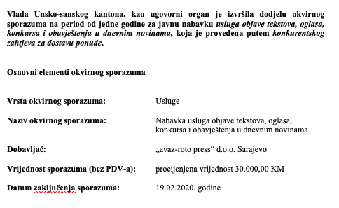 Nabavka usluga objave tekstova, oglasa, konkursa i obavještenja u dnevnim novinama