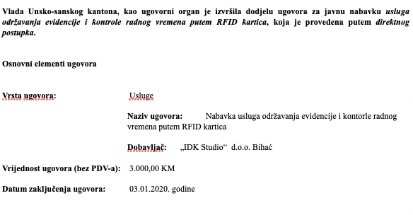 Nabavka usluga održavanja evidencije i kontorle radnog vremena putem RFID kartica