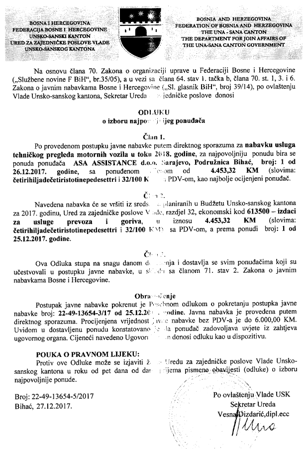 Preuzmi dokument: Odluka o izboru najpovoljnijeg ponuđača