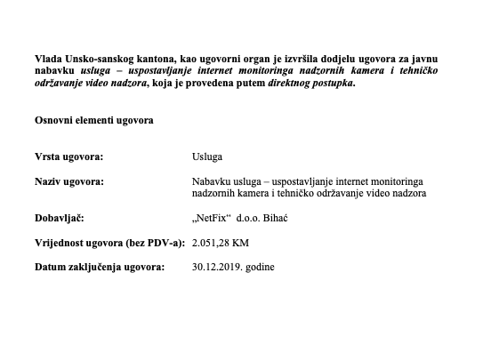 Nabavku usluga – uspostavljanje internet monitoringa nadzornih kamera i tehniÄko održavanje video nadzora