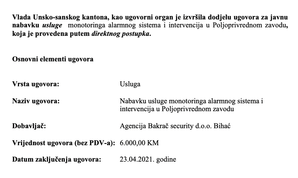 Nabavku usluge monotoringa alarmnog sistema i intervencija u Poljoprivrednom zavodu