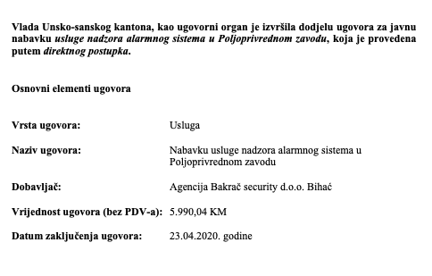 Nabavku usluge nadzora alarmnog sistema u Poljoprivrednom zavodu