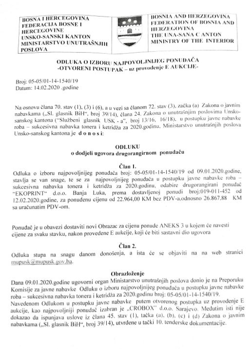 Preuzmi dokument: Odluka o poništenju i ponovnom pokretanju postupka ...
