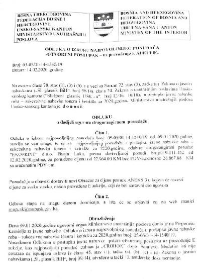 Preuzmi dokument: Odluka o poništenju postupka javne nabavke