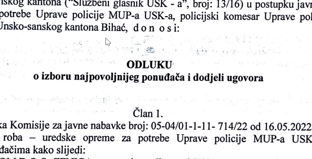 Odluka o izboru najpovoljnijeg ponuđaÄa i dodjeli ugovora (PREUZMI DOKUMENT).