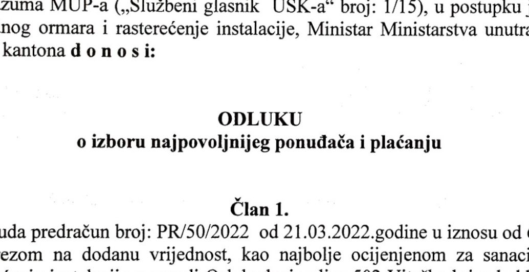 Odluka o izboru najpovoljnijeg ponuđaÄa i plaćanju (PREUZMI ODLUKU).