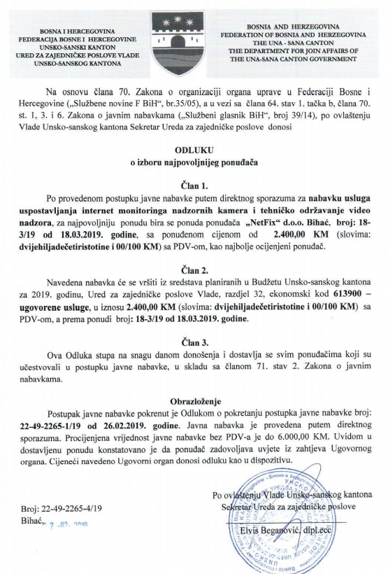 Preuzmi dokument: Odluka o izboru najpovoljnijeg ponuđača