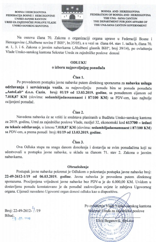 Preuzmi dokument: Odluka o izboru najpovoljnijeg ponuđača