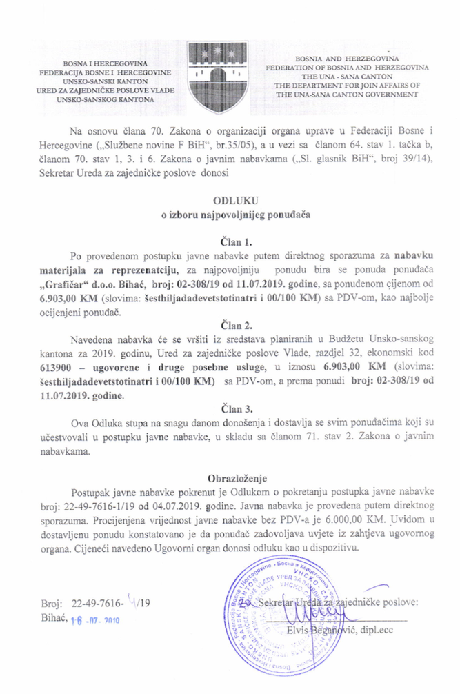 Preuzmi dokument: Odluka o izboru najpovoljnijeg ponuđača