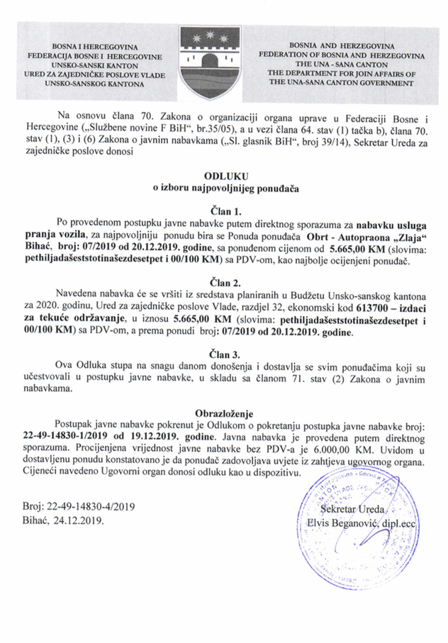 Preuzmi dokument: Odluka o izboru najpovoljnijeg ponuđača