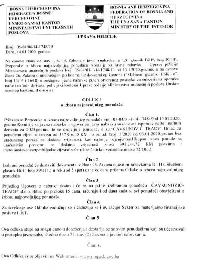 Preuzmi dokument: Posebna odluka o pokretanju postupka javne nabavke