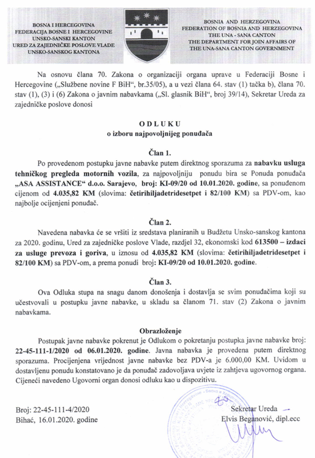 Preuzmi dokument: Odluka o izboru najpovoljnijeg ponuđača