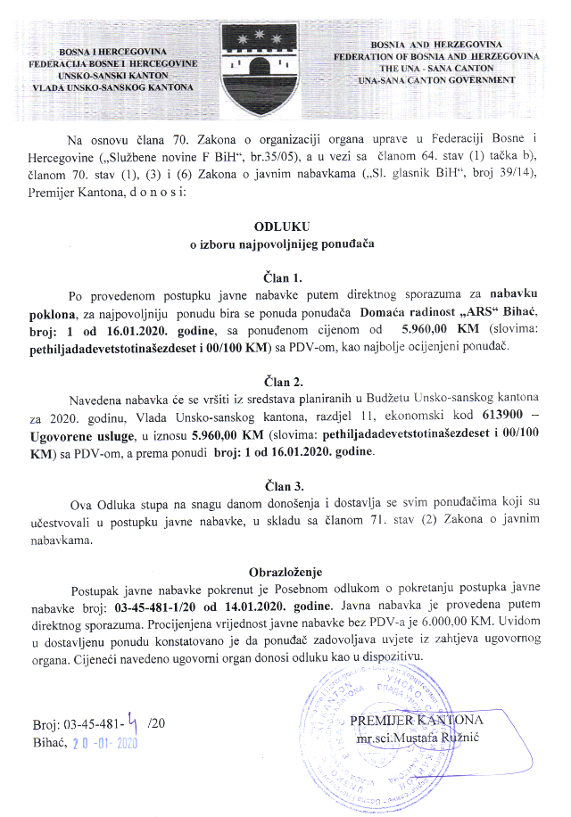 Preuzmi dokument: Odluka o izboru najpovoljnijeg ponuđača