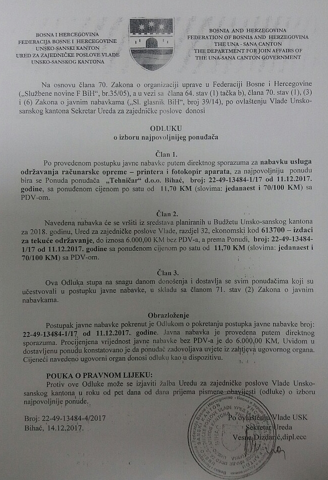 Preuzmi dokument: Odluka o izboru najpovoljnijeg ponuđača