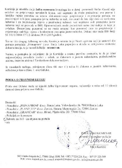 ODLUKA o izboru najpovoljnijeg ponuđača