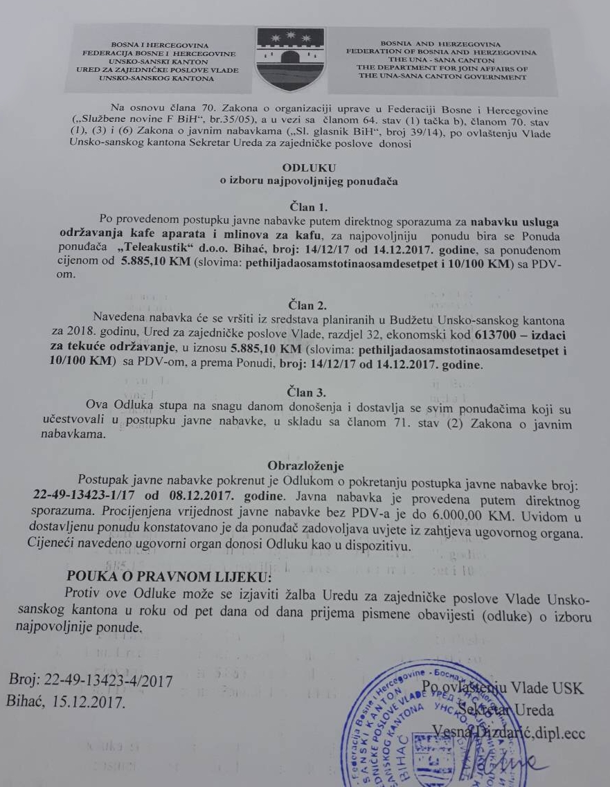 Preuzmi dokument: Odluka o izboru najpovoljnijeg ponuđača