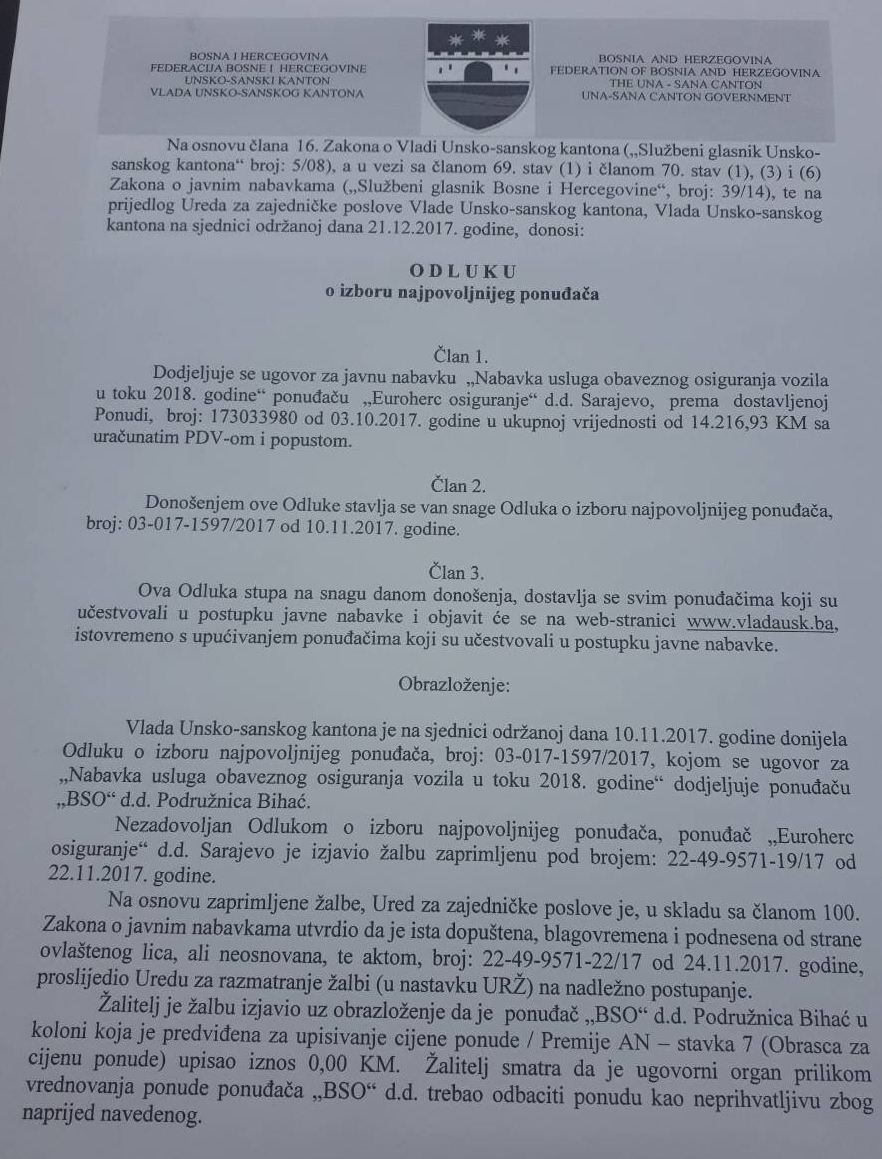 Preuzmi dokument: Odluka o izboru najpovoljnijeg ponuđača