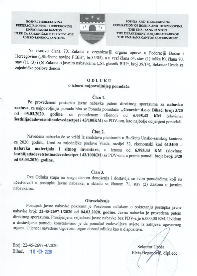 Preuzmi dokument: Odluka o izboru najpovoljnijeg ponuđača