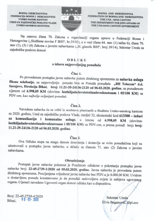 Preuzmi dokument: Odluka o izboru najpovoljnijeg ponuđača