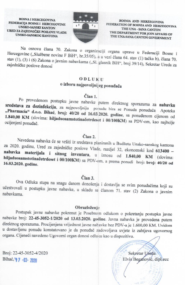 Preuzmi dokument: Odluka o izboru najpovoljnijeg ponuđača