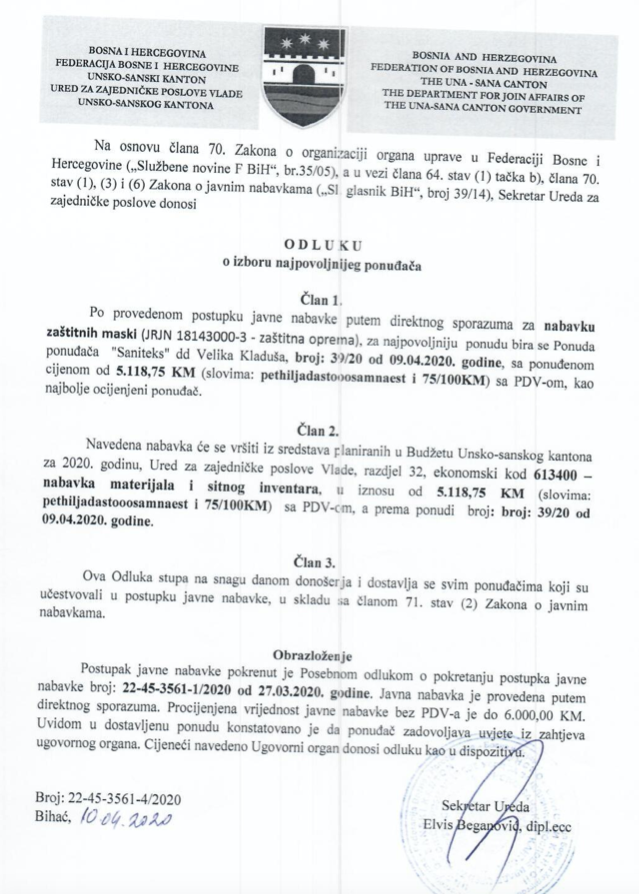 Preuzmi dokument: Odluka o izboru najpovoljnijeg ponuđača