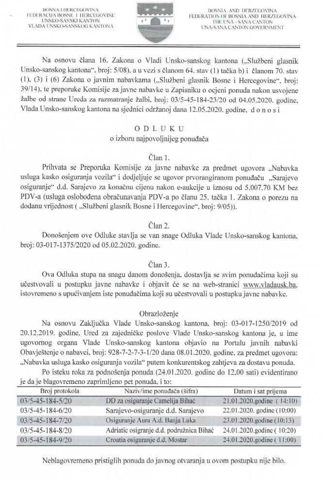 Preuzmi dokument: Odluka o izboru najpovoljnijeg ponuđača