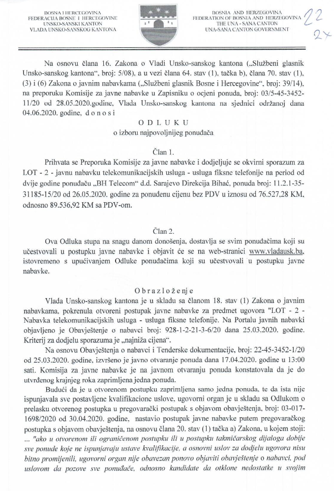 Preuzmi dokument: Odluka o izboru najpovoljnijeg ponuđača