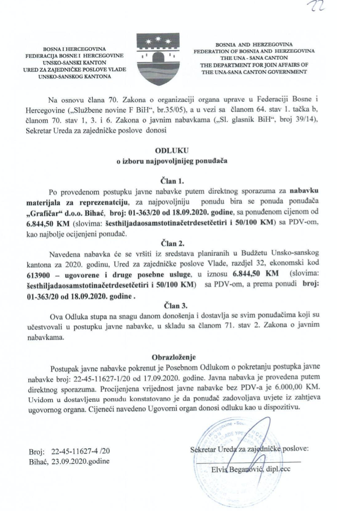 Preuzmi dokument: Odluka o izboru najpovoljnijeg ponuđača
