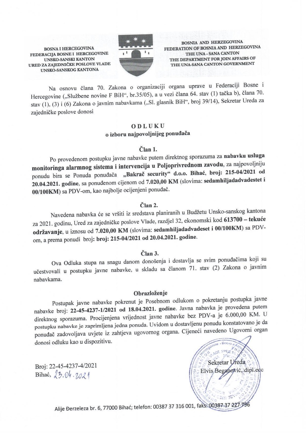 Preuzmi dokument: Javni poziv i Odluka o nabavci usluga restorana i usluga ...