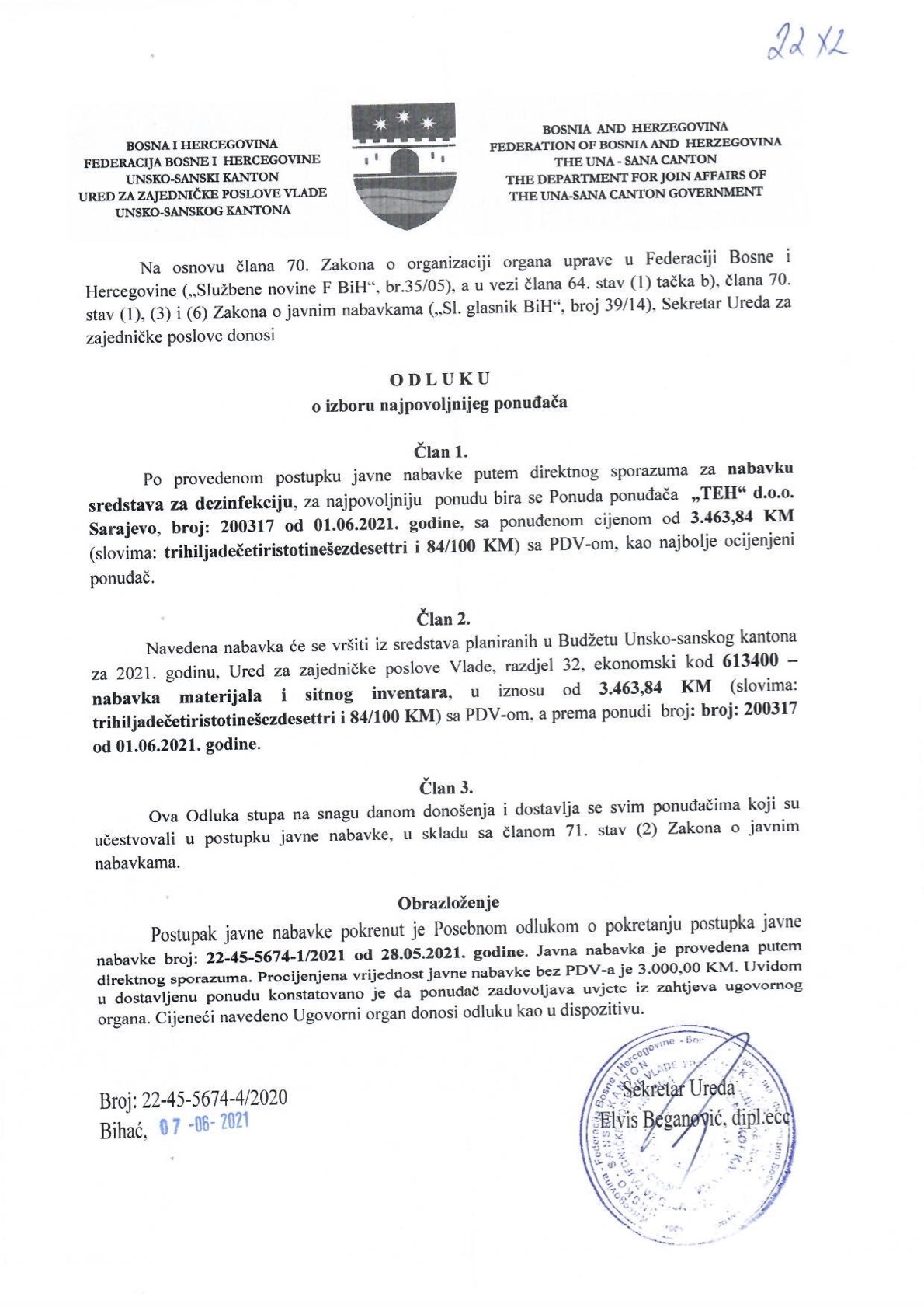 Preuzmi dokument: Odluka o izboru najpovoljnijeg ponuđača