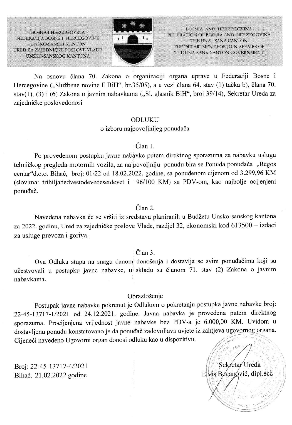 Preuzmi dokument: Odluka o izboru najpovoljnijeg ponuđača