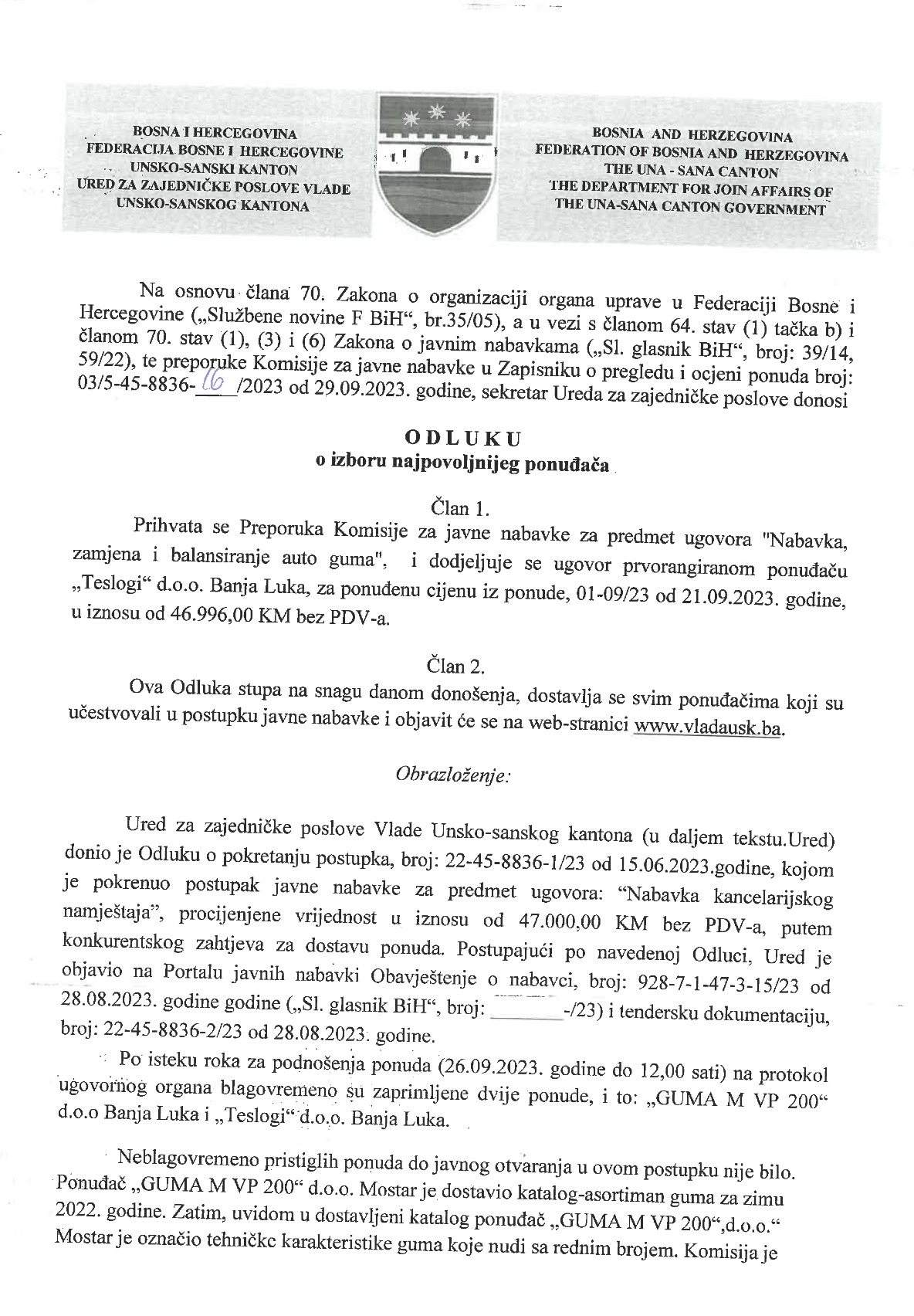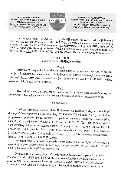 Preuzmi dokument: Odluka o izboru najpovoljnijeg ponuđača