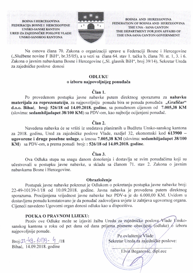 Preuzmi dokument: Odluka o izboru najpovoljnijeg ponuđača
