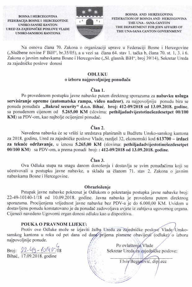 Preuzmi dokument: Odluka o izboru najpovoljnijeg ponuđača