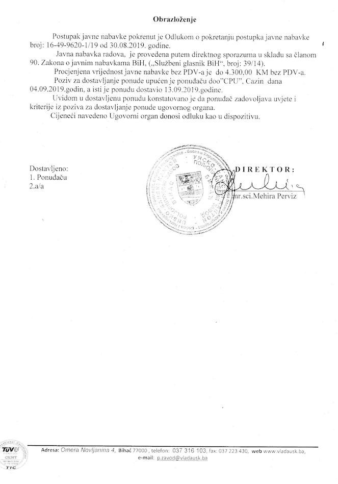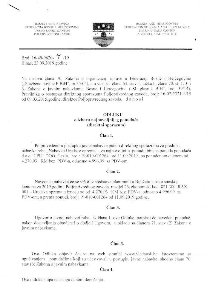 Preuzmi dokument: Odluka o izboru najpovoljnijeg ponuđača
