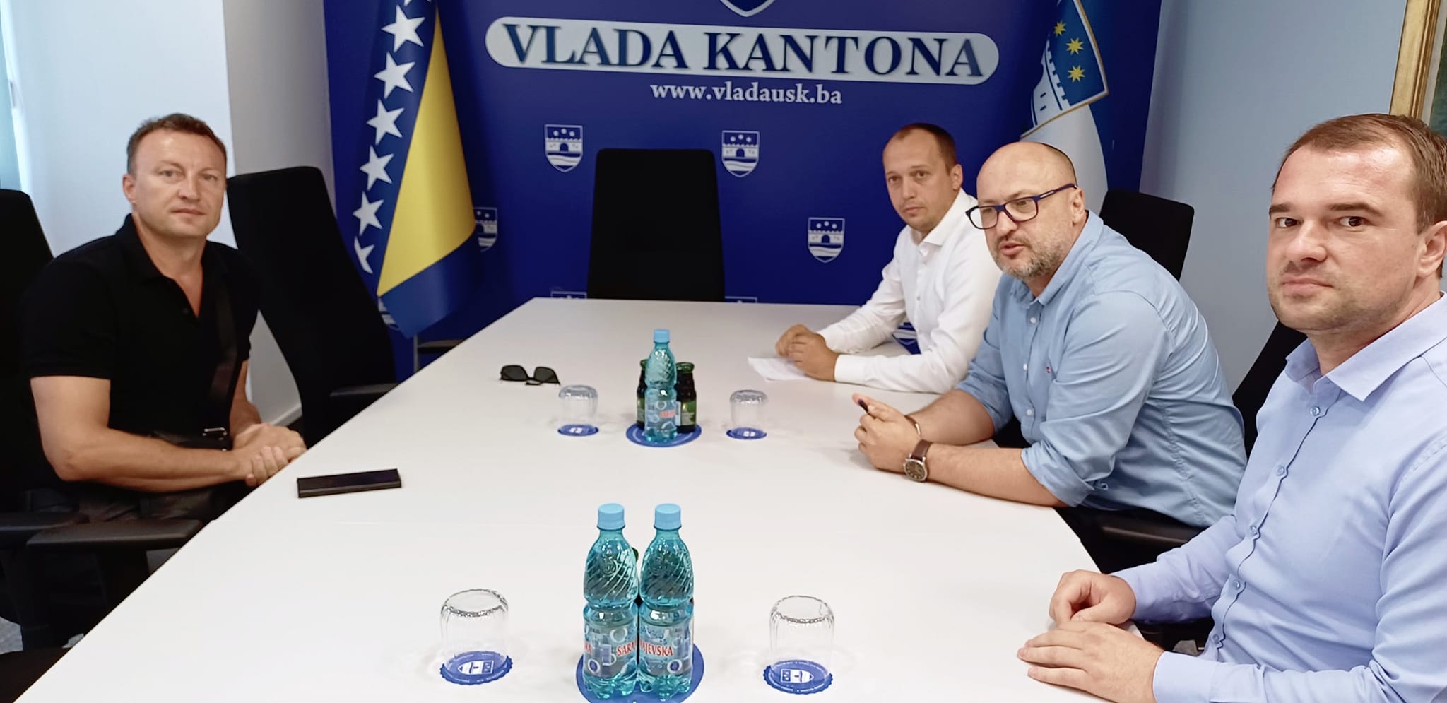 Premijer Unsko-sanskog kantona Nijaz Hušić sa ministrom privrede Arminom Kardaševićem i ministrom finansija Dankom Jakšićem, upriličio je prijem za Alena Zulića, direktora Nacionalnog parka "Una".