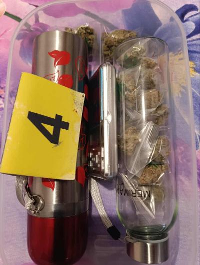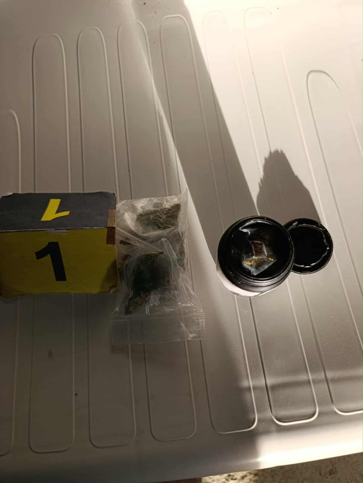 Tokom pretresa pronađena je i oduzeta određena količina biljne materije koja svojim izgledom asocira na opojnu drogu, digitalna vaga, drobilica i drugi predmeti koji se dovode u vezu sa izvršenjem krivičnog djela.