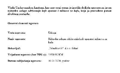 Nabavka usluga održavanja kafe aparata i mlinova za kafu