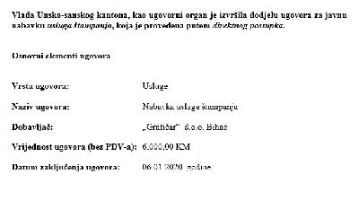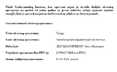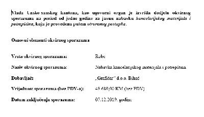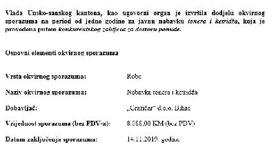 Na osnovu Zaključka Skupštine Unsko-sanskog kantona (broj: 01/1-2-45-607/25 ...