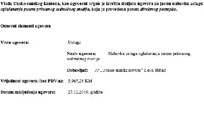Nabavka usluga oglašavanja putem printanog sedmiÄnog medija