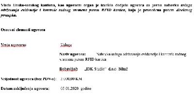 Nabavka usluga održavanja evidencije i kontorle radnog vremena putem RFID kartica