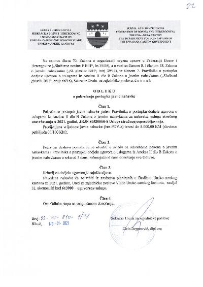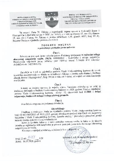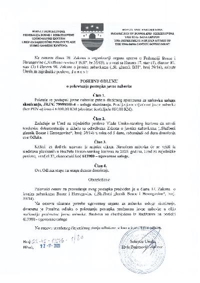 Na osnovu Zaključka Skupštine Unsko-sanskog kantona (broj: 01/1-2-45-607/25 ...